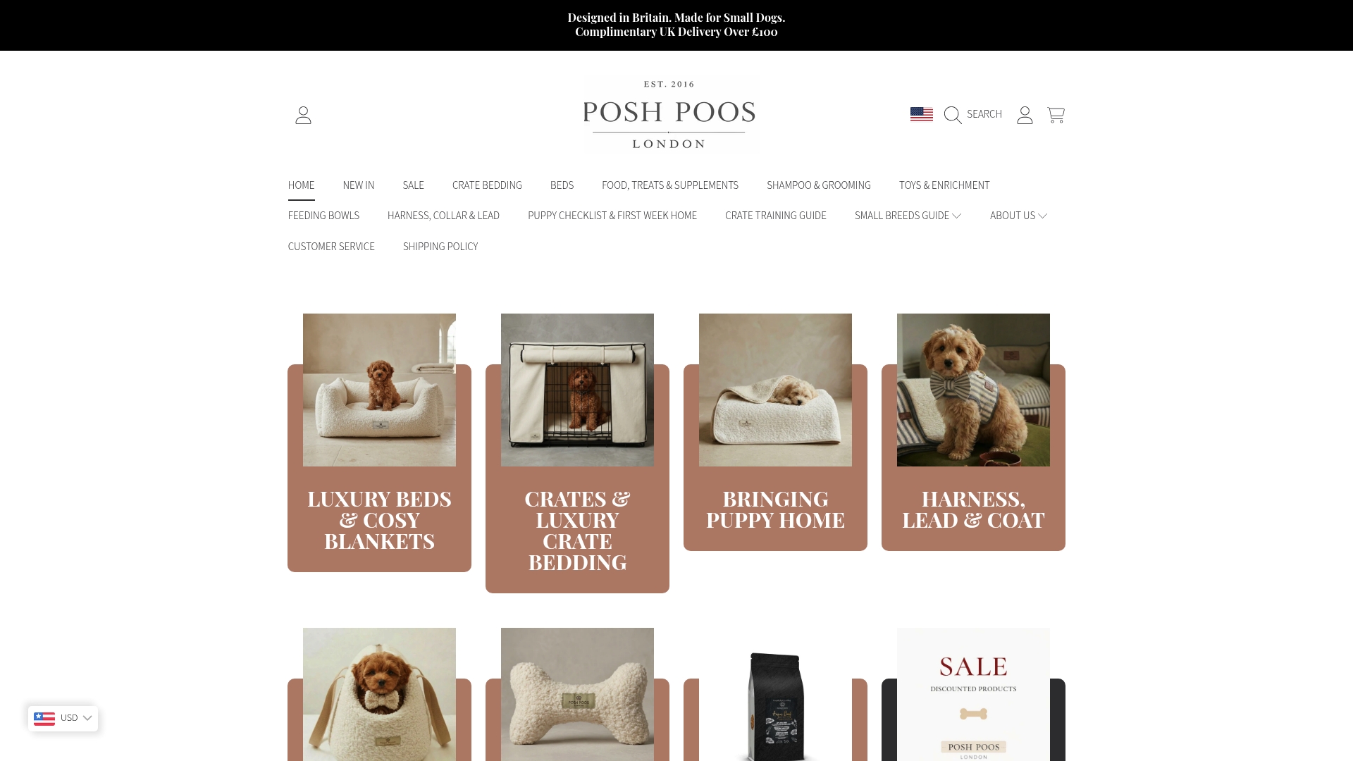 Posh Poos offers luxury dog products focused on small breeds with a clear emphasis on design, comfort, and British craftsmanship. The collection suits owners who want coordinated, stylish pet furnishings that feel like an intentional part of their home.