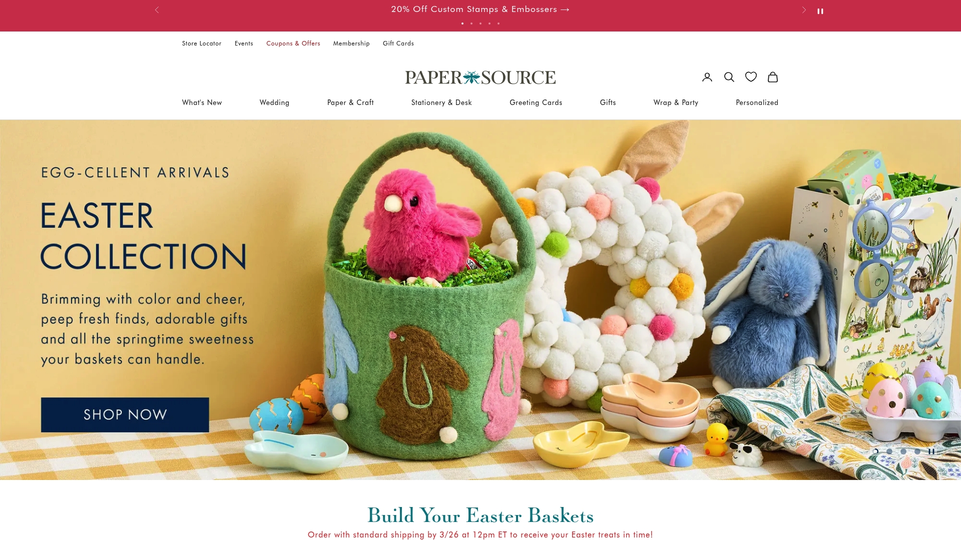 Paper Source offers an extensive selection of stationery, invitations, greeting cards, and gifts plus personalization services for stationery and wedding products. The site includes workshops and virtual consultations, seasonal collections, and online ordering with discounts.