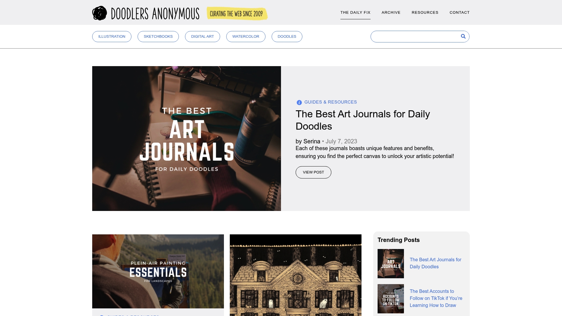 Doodlers Anonymous is a modern art blog that offers a vast archive of creative inspiration and practical how to guides. It serves artists who want ideas, learning resources, and a friendly community rather than a storefront for direct purchases.