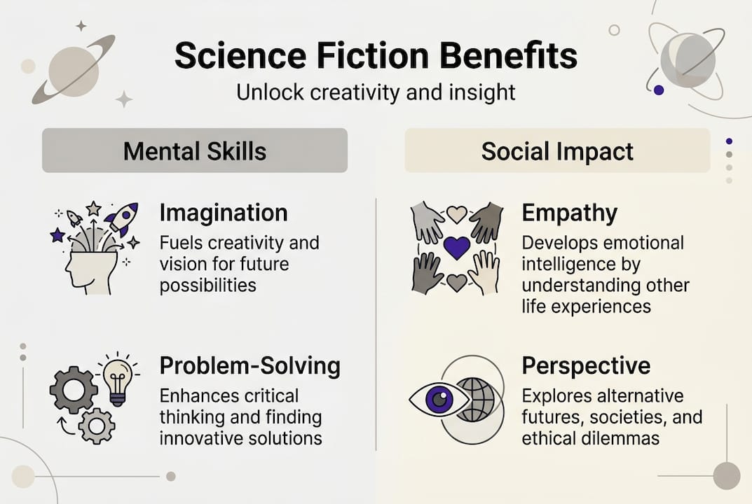 Most people dismiss science fiction as escapist entertainment, but research reveals it actively reshapes how you think, empathize, and understand society. Reading science fiction strengthens your creativity, expands your moral imagination, and deepens your connection to humanity as a whole. Far from simple entertainment, sci-fi serves as a laboratory for exploring alternative futures, ethical dilemmas, and the consequences of technological change. This article examines why engaging with science fiction offers profound personal and social benefits that extend well beyond the page.